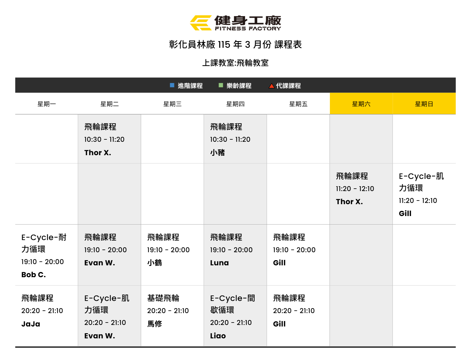 24Feb.2026【課表】員林廠-3月飛輪課表