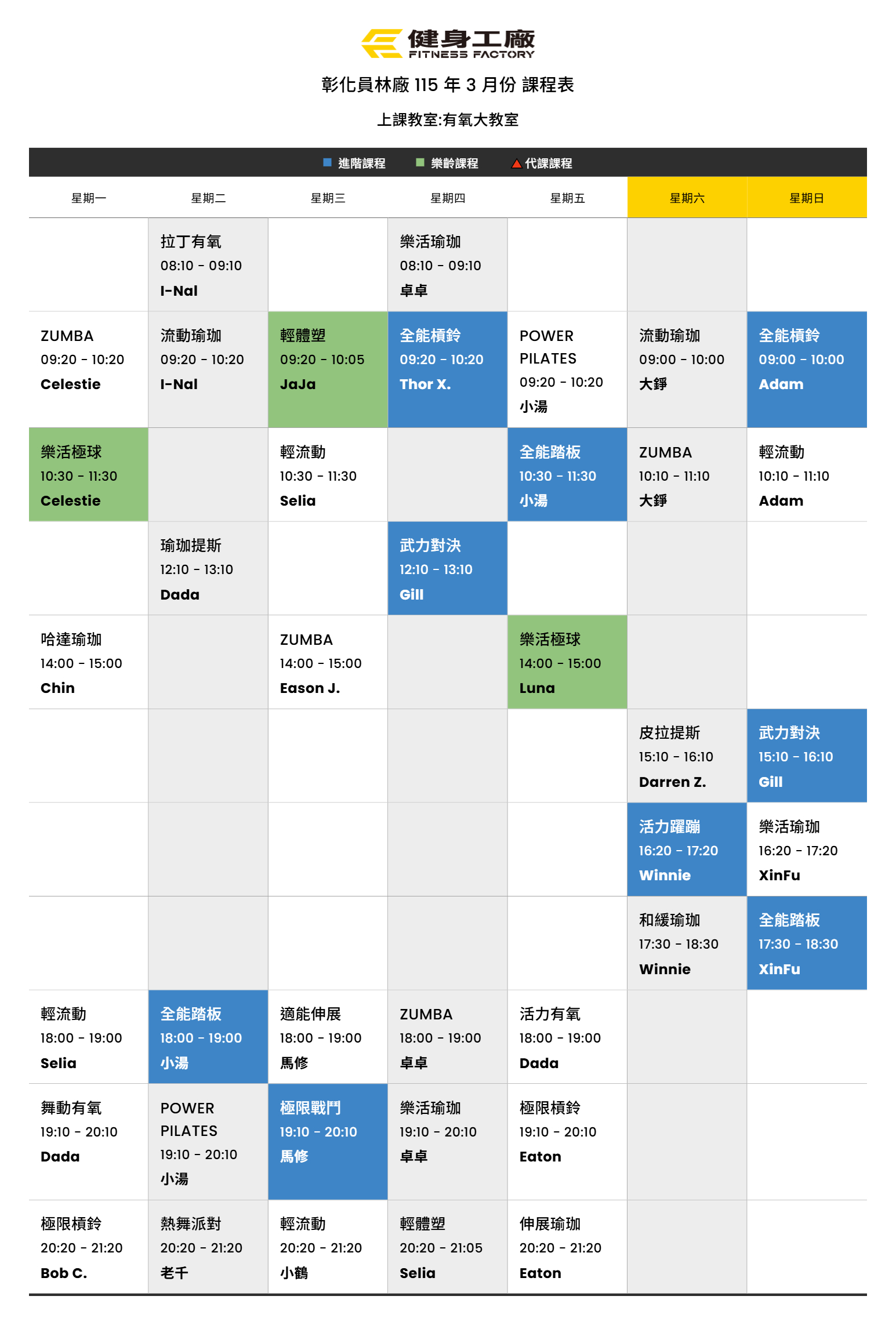 24Feb.2026【課表】員林廠-3月有氧課表