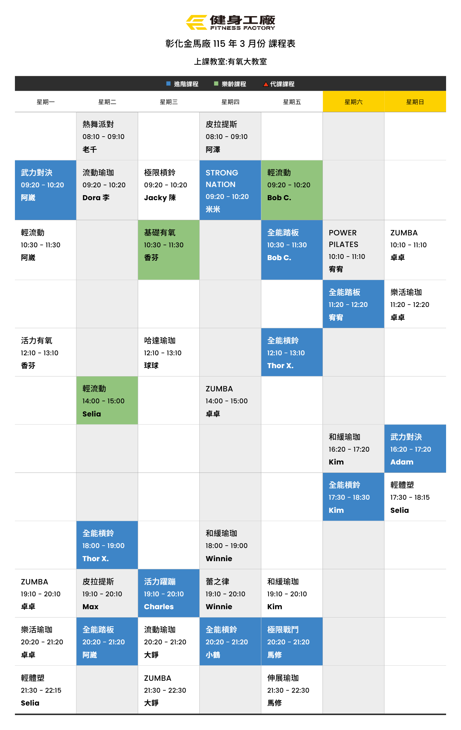 24Feb.2026【課表】金馬廠-3月有氧課表
