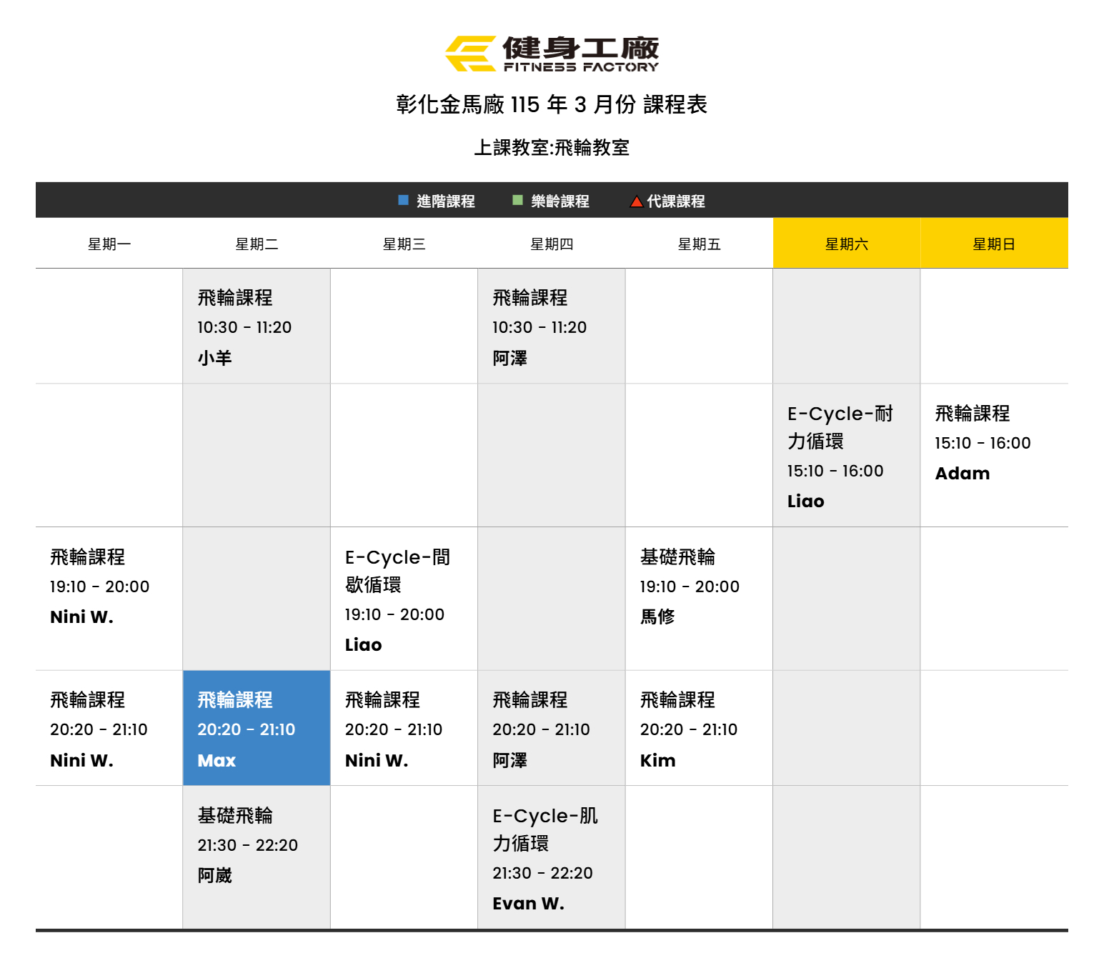 24Feb.2026【課表】金馬廠-3月飛輪課表