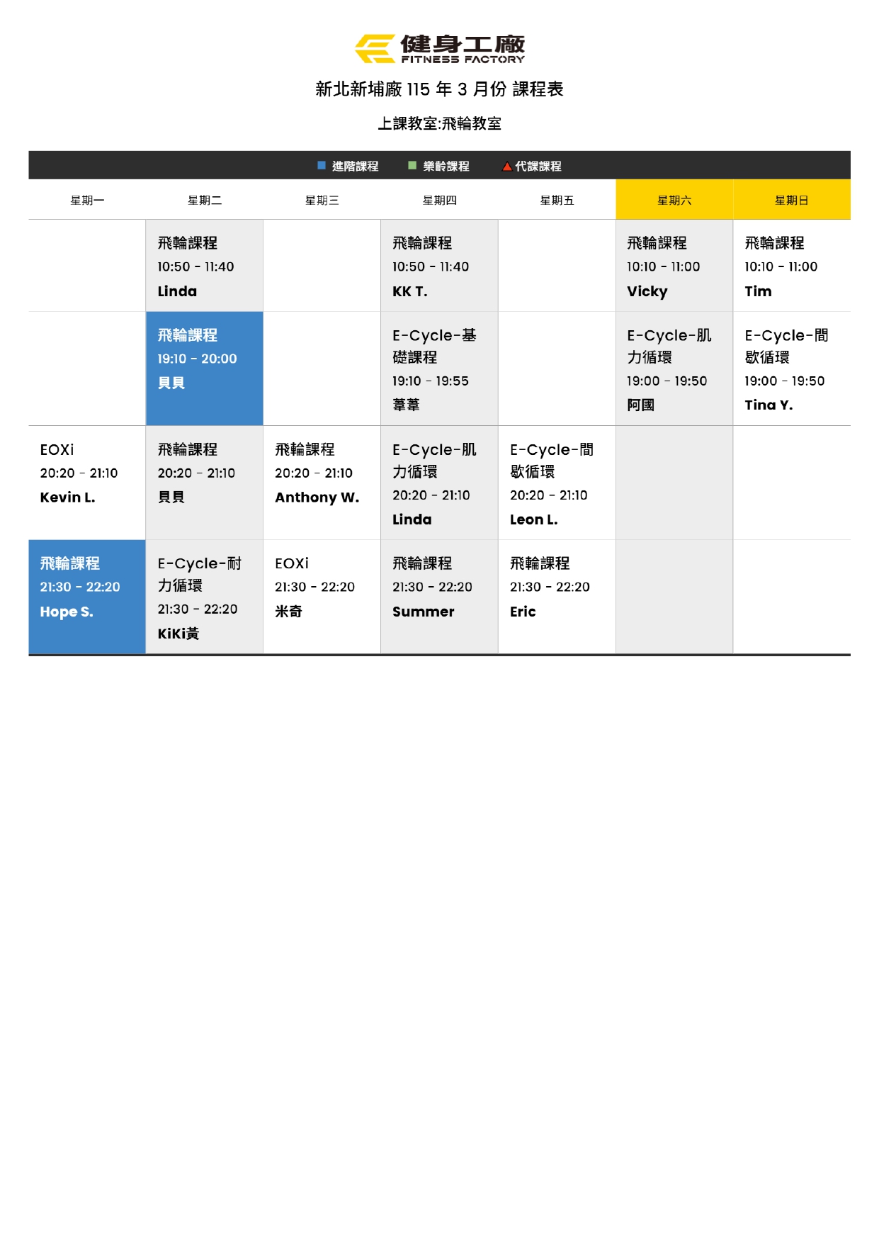 24Feb.2026【課表】新埔廠 -3月飛輪課表