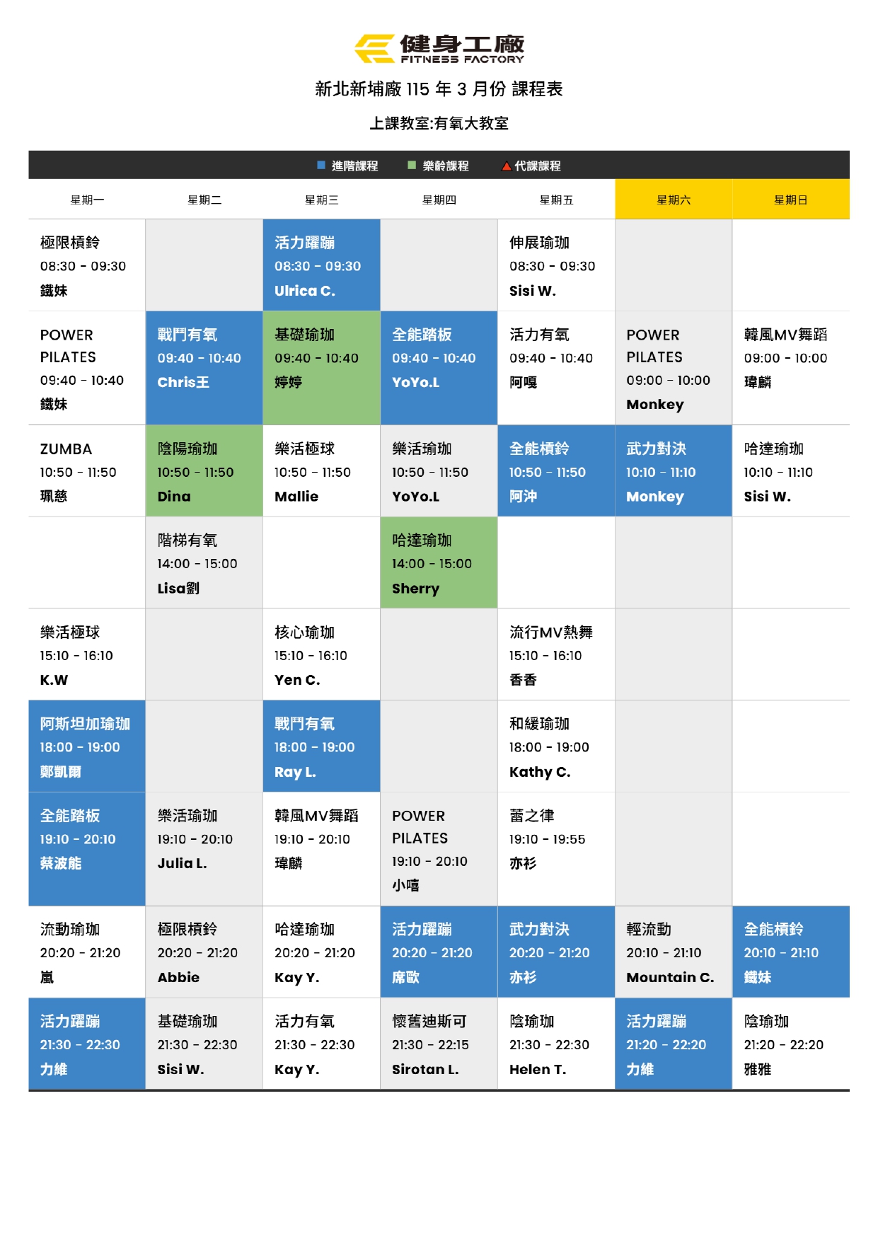 24Feb.2026【課表】新埔廠 -3月有氧課表