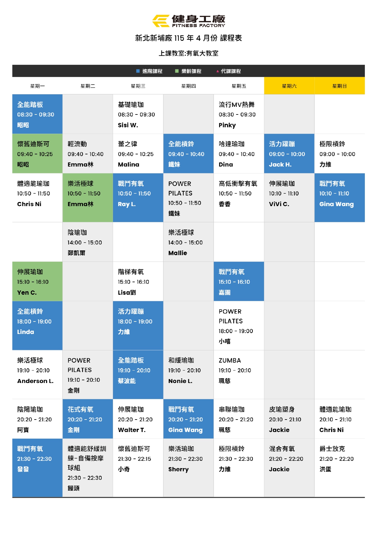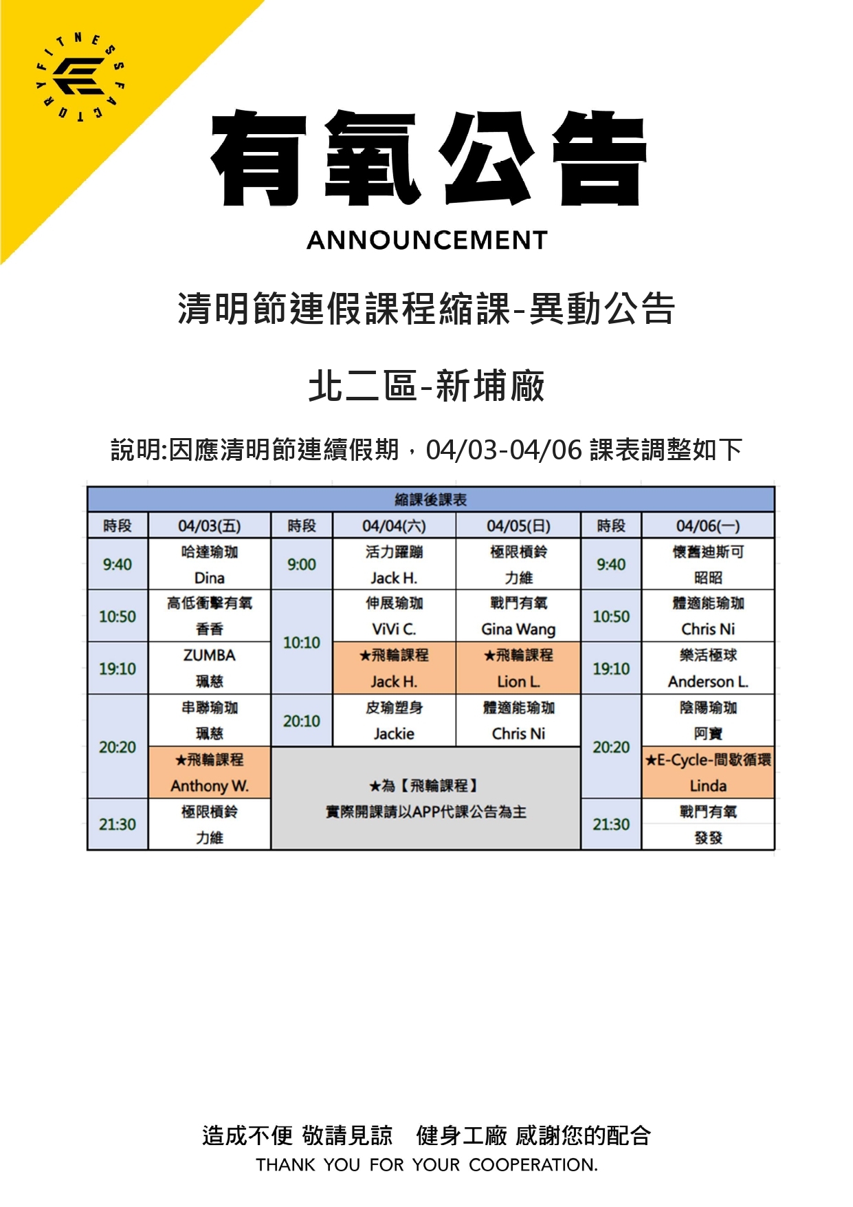 24Mar.2026【課表】新埔廠-4月有氧課表