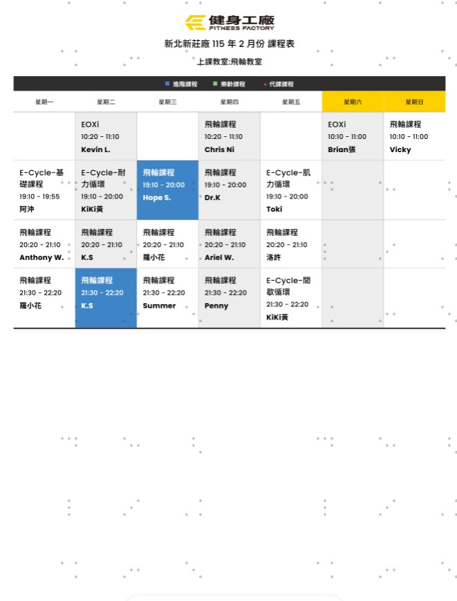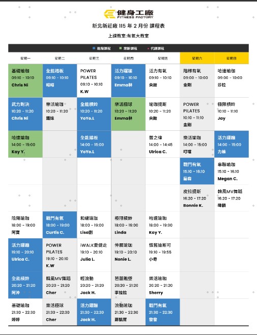 29Jan.2026【課表】新莊廠-2月有氧課表