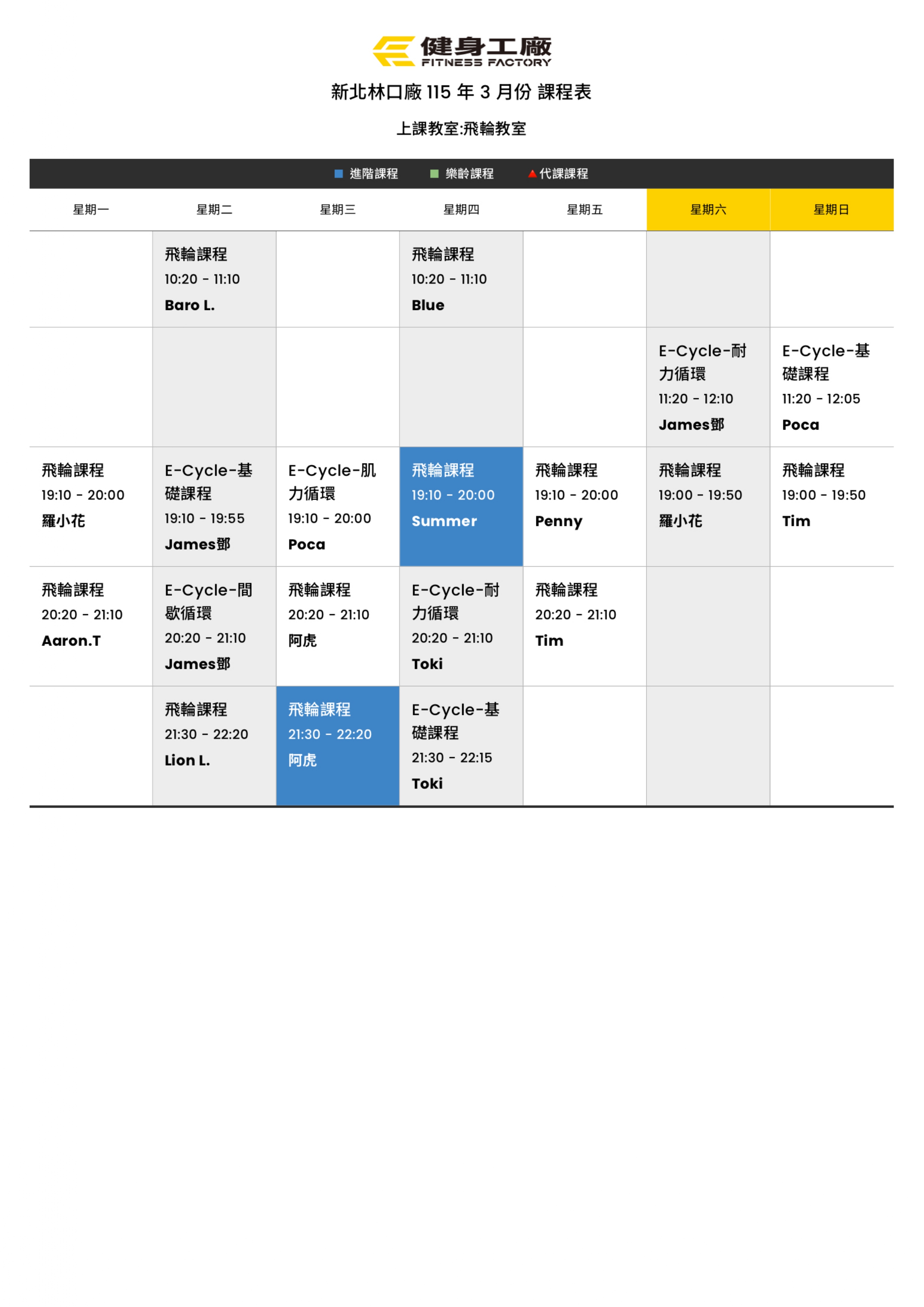 24Feb.2026【課表】林口廠-3月飛輪課表