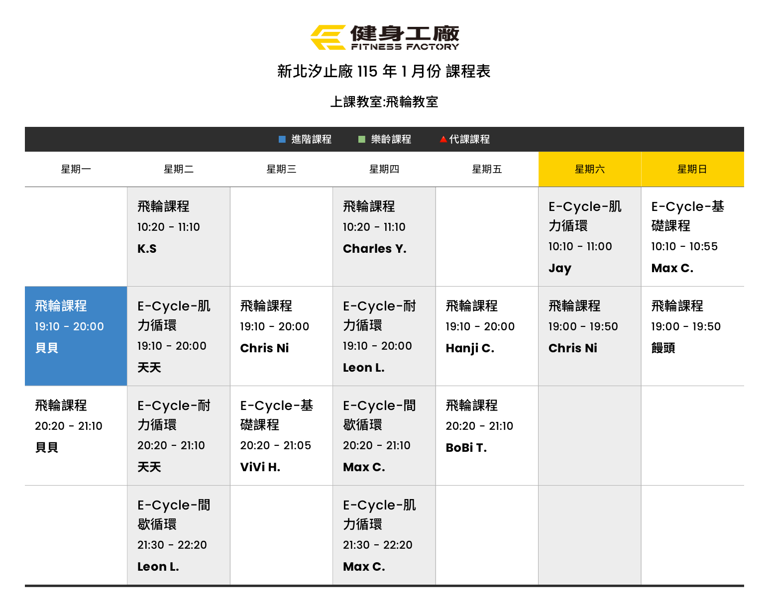 25Dec.2025【課表】汐止廠-1月飛輪課表