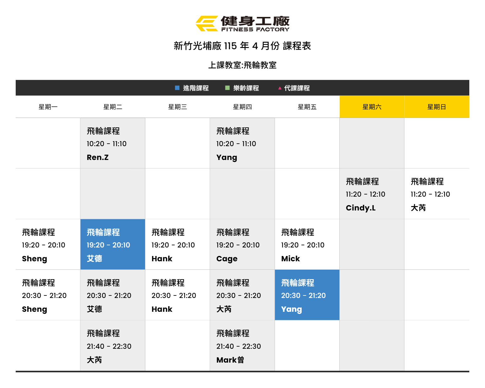 24Mar.2026【課表】光埔廠-4月飛輪課表