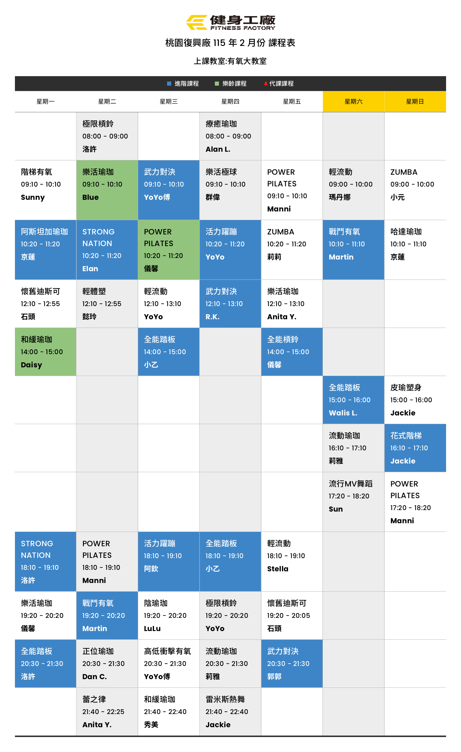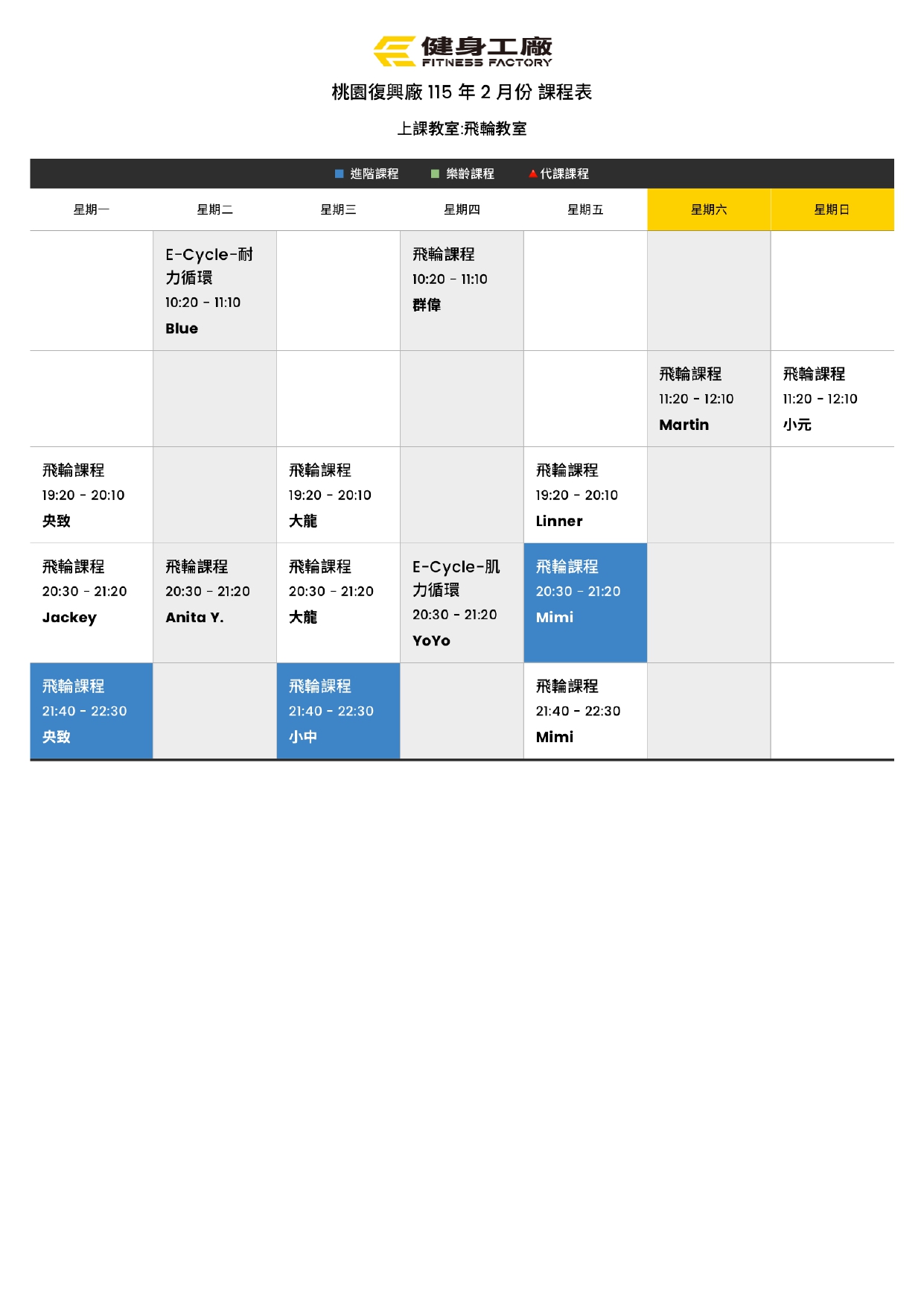 26Jan.2026【課表】復興廠-2月飛輪課表