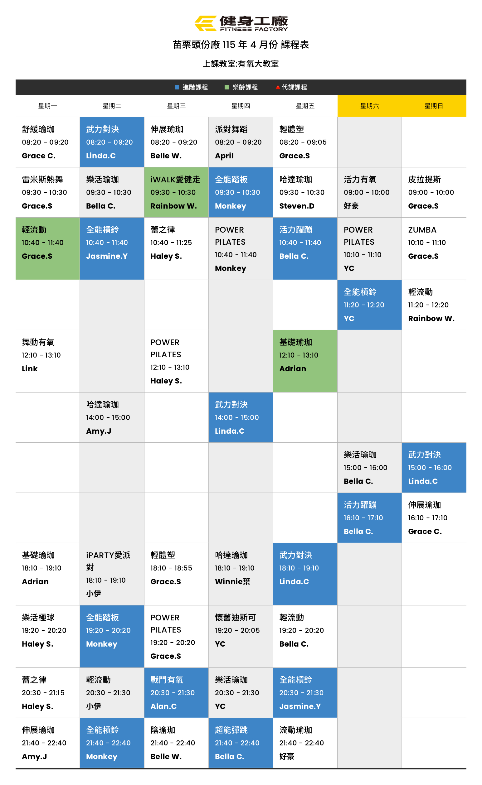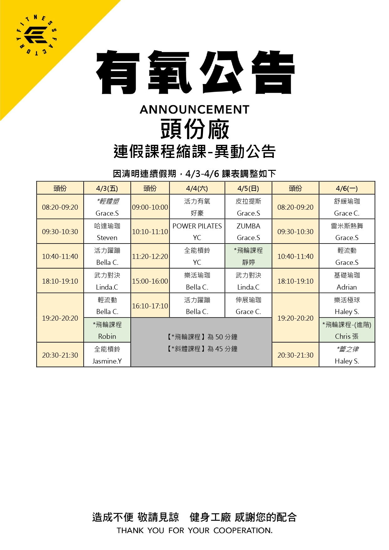 25Mar.2026【課表】頭份廠-4月有氧課表