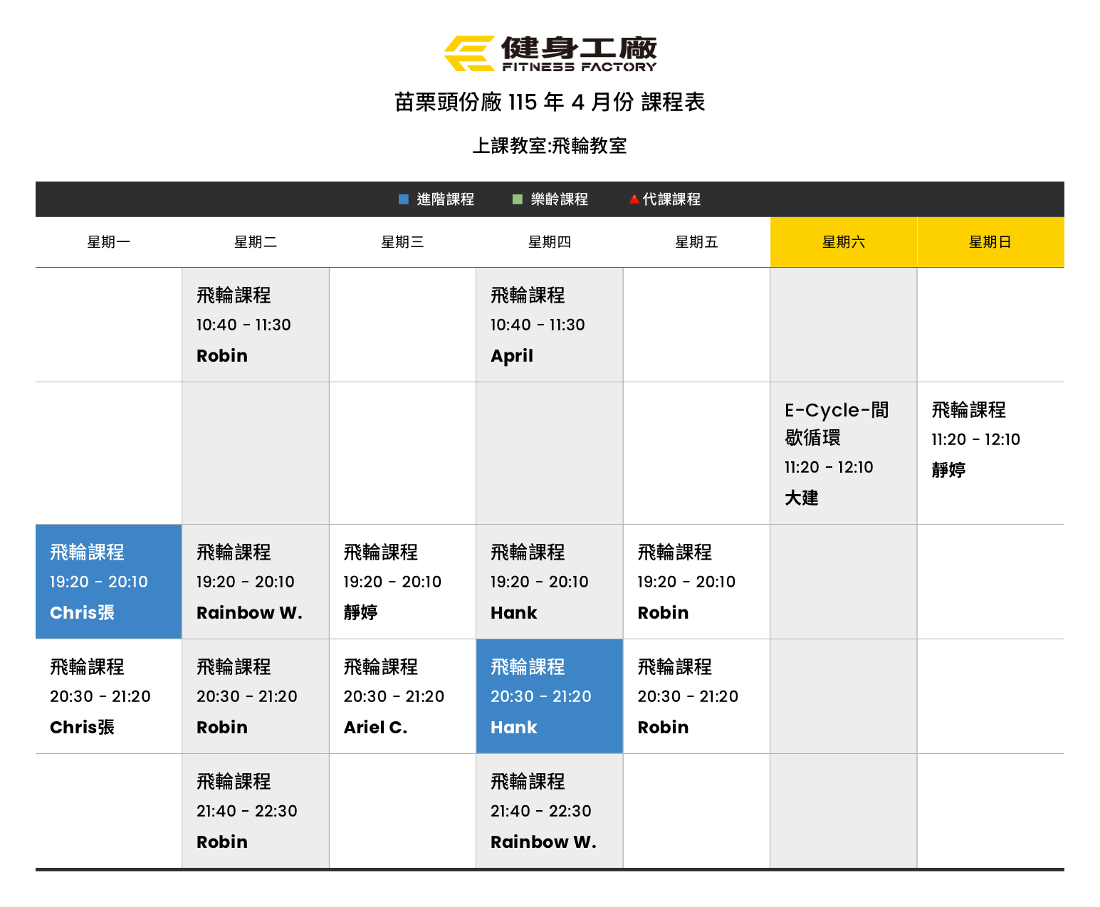 25Mar.2026【課表】頭份廠-4月飛輪課表