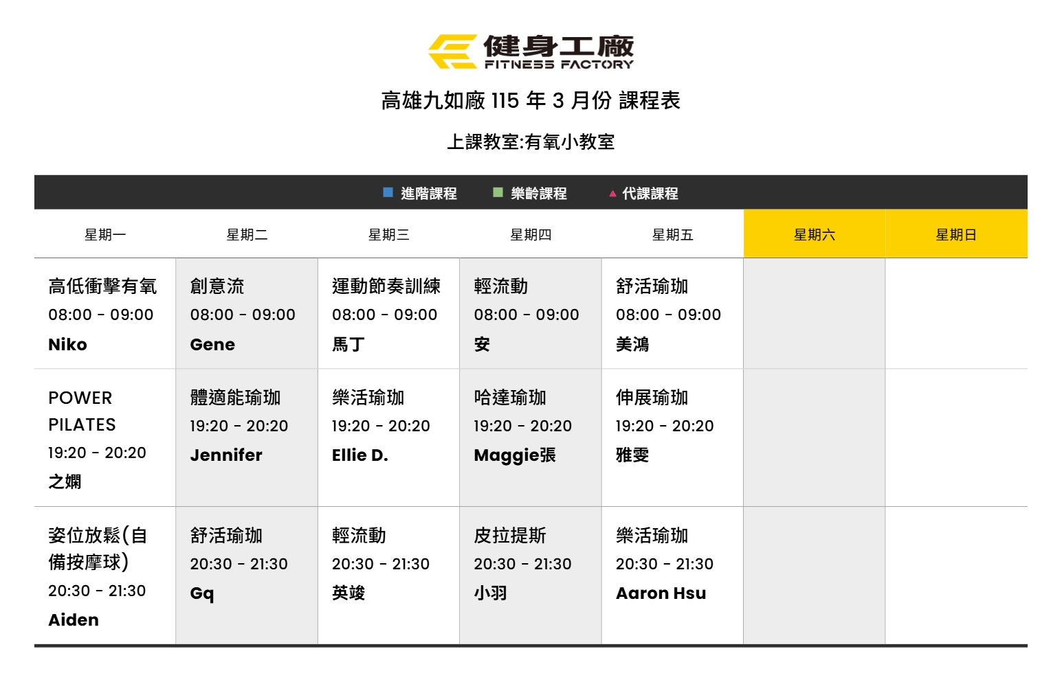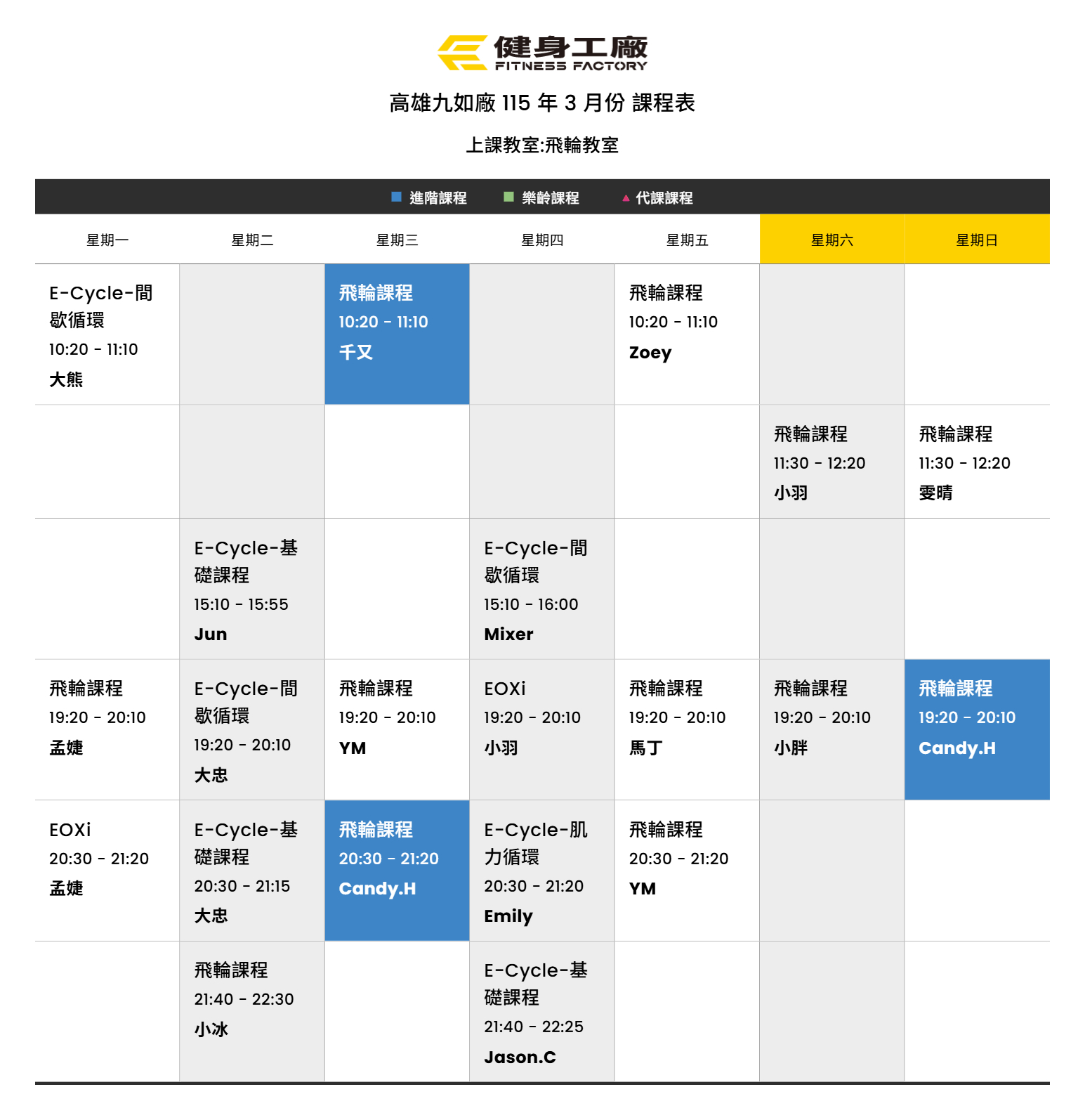 01Mar.2026【課表】九如廠-3月飛輪課表