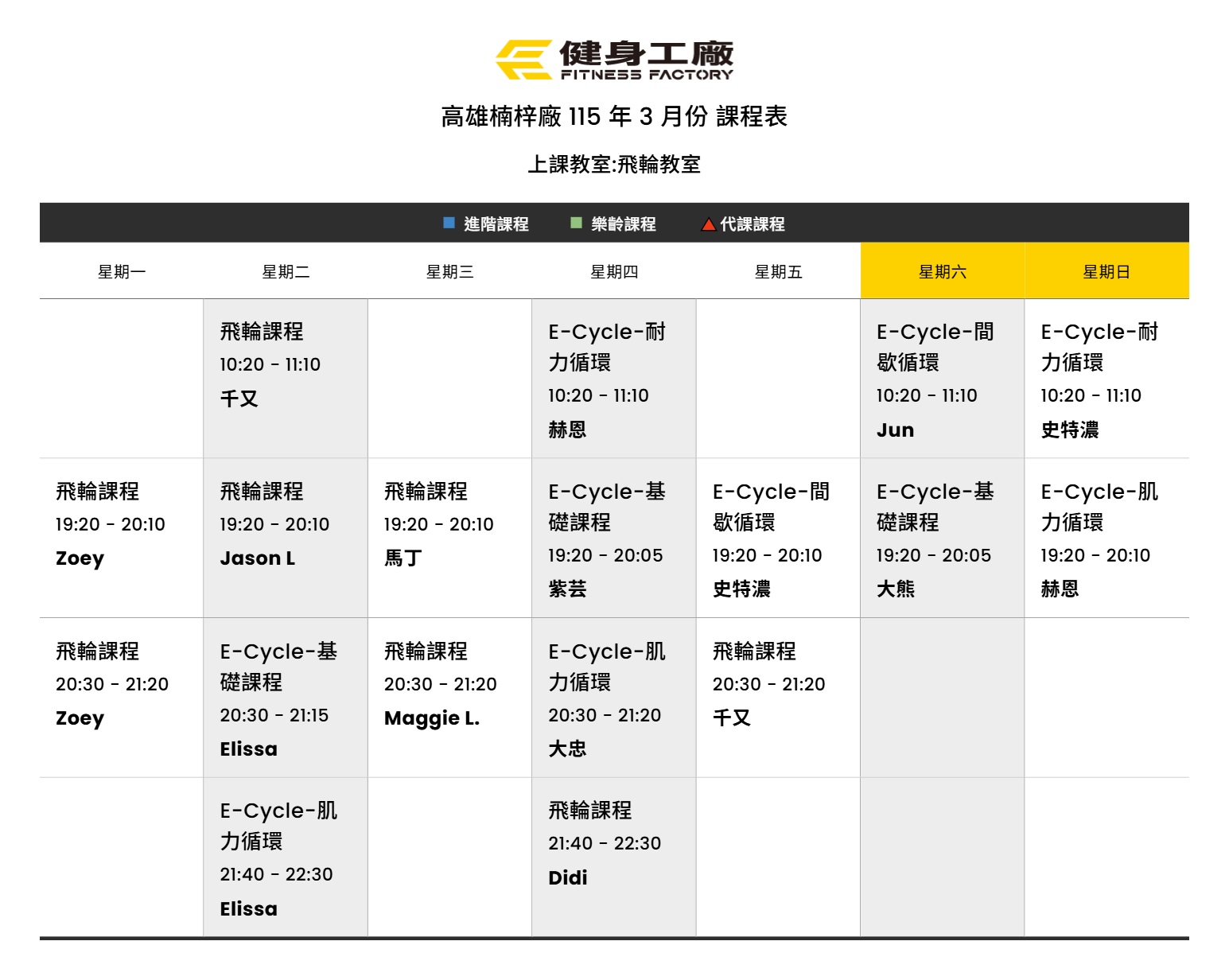 24Feb.2026【課表】楠梓廠-3月飛輪課表