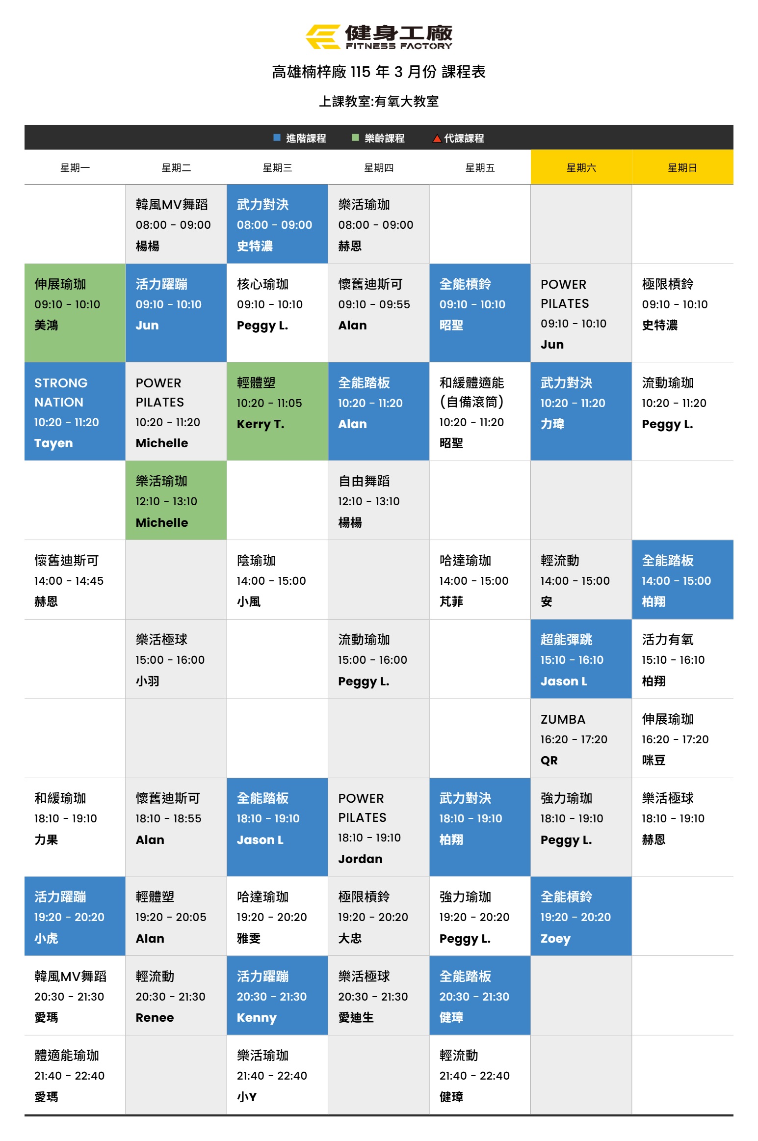 24Feb.2026【課表】楠梓廠-3月有氧課表