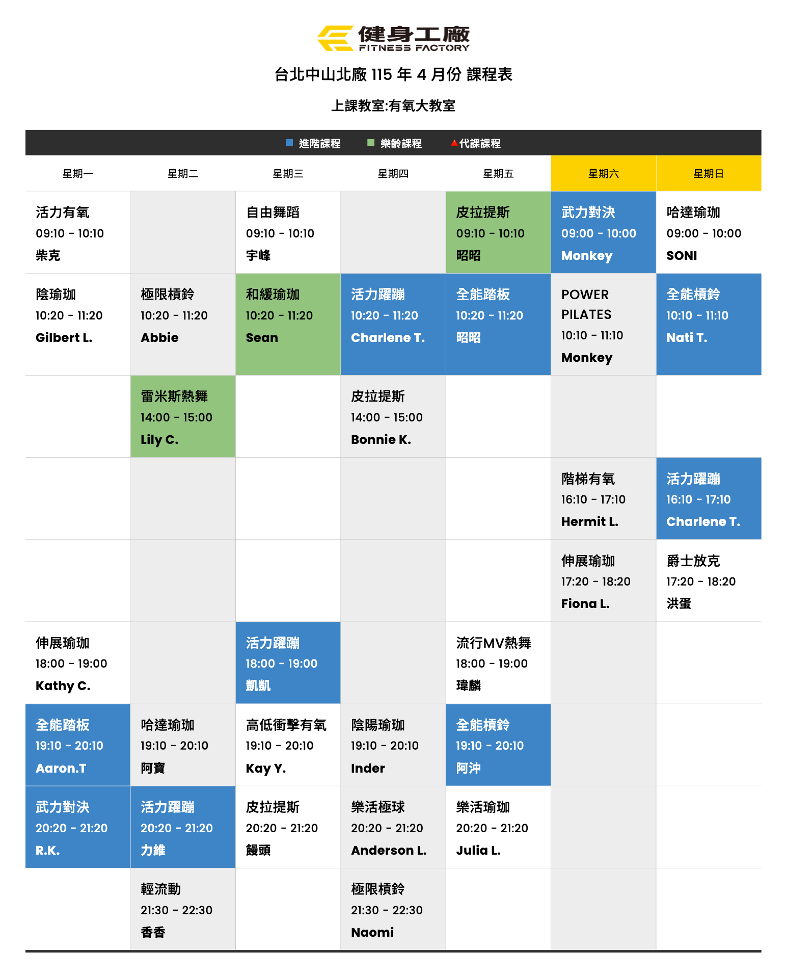 25Mar.2026【課表】中山北廠-4月有氧課表