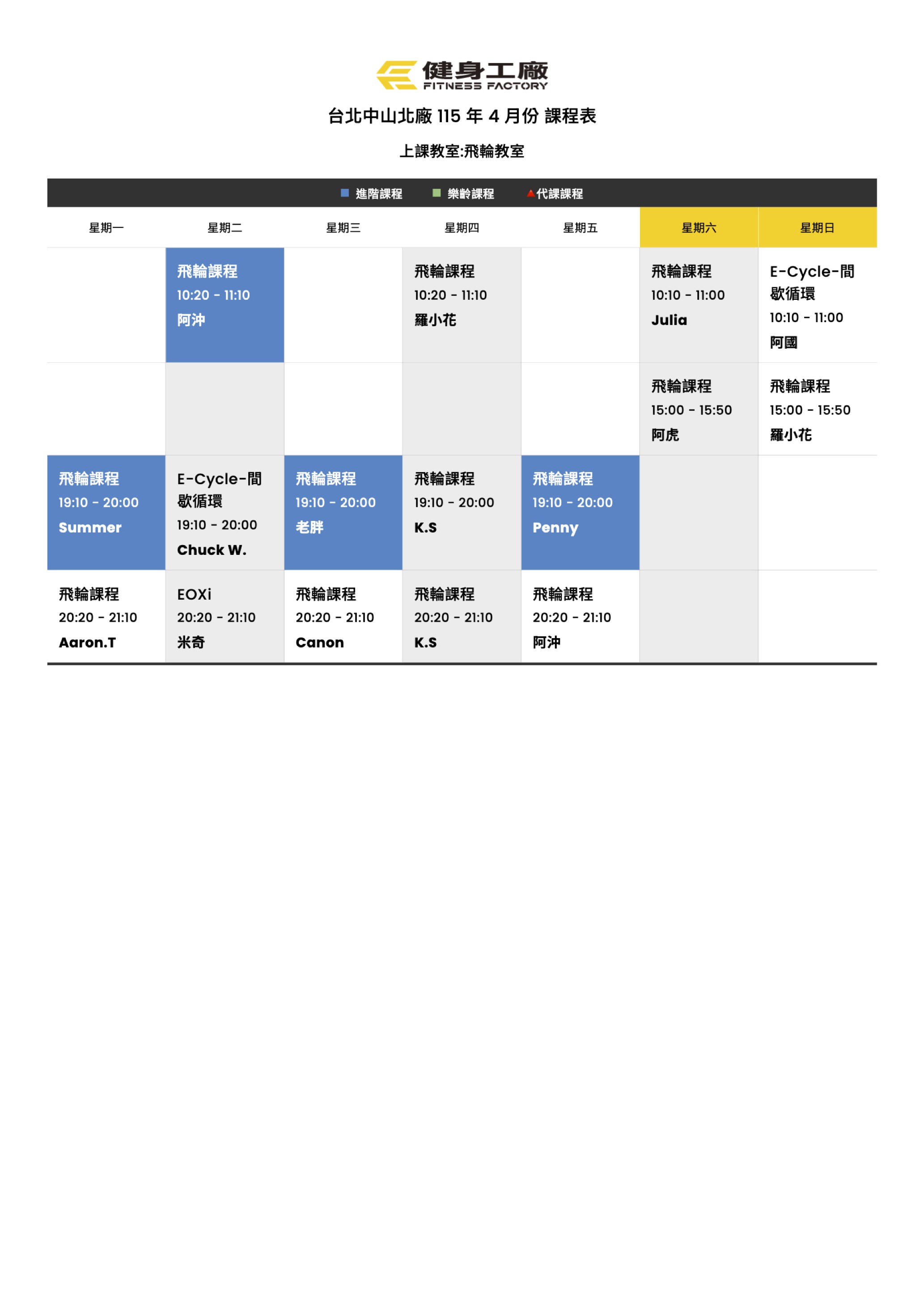 25Mar.2026【課表】中山北廠-4月飛輪課表