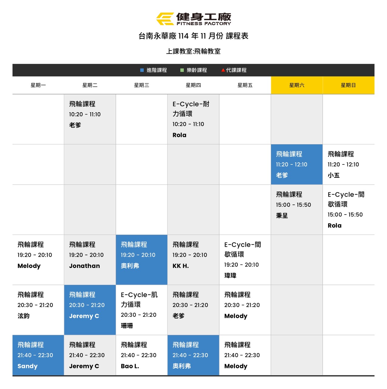 01Nov.2025【課表】永華廠-11月飛輪課表