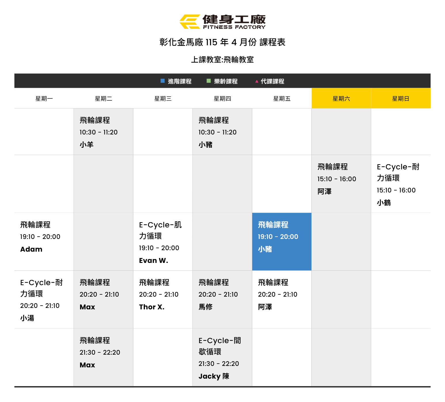 24Mar.2026【課表】金馬廠-4月飛輪課表