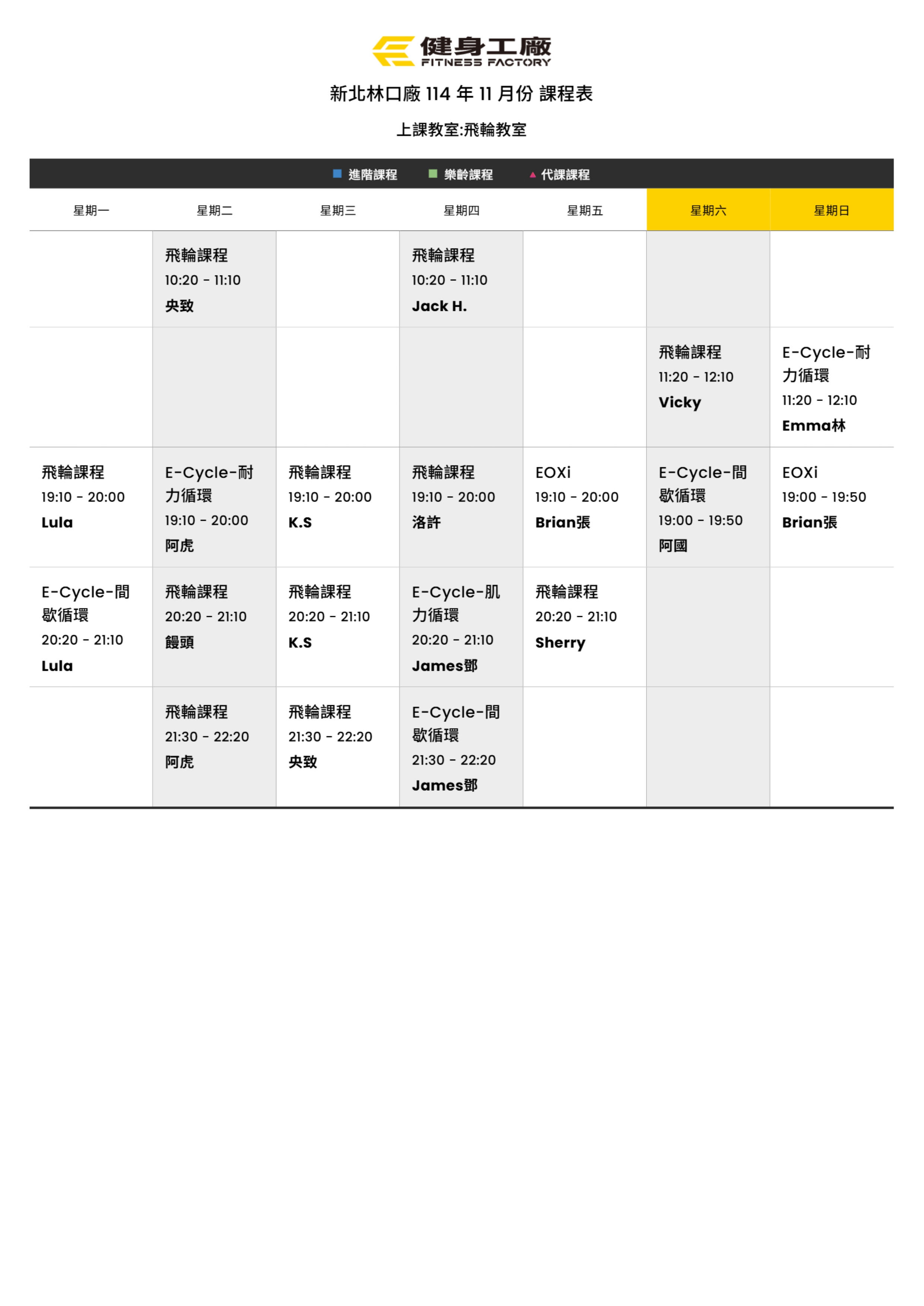 24Oct.2025【課表】林口廠-11月飛輪課表