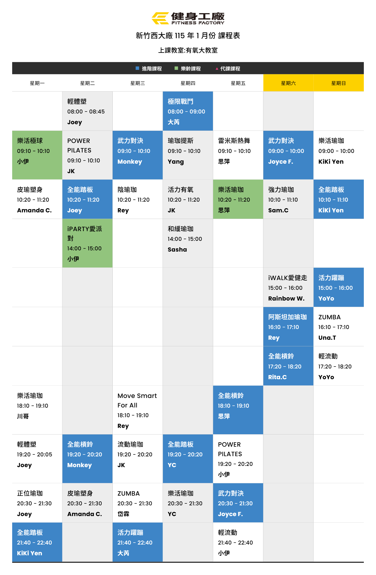 24Dec.2025【課表】西大廠-1月份飛輪課表