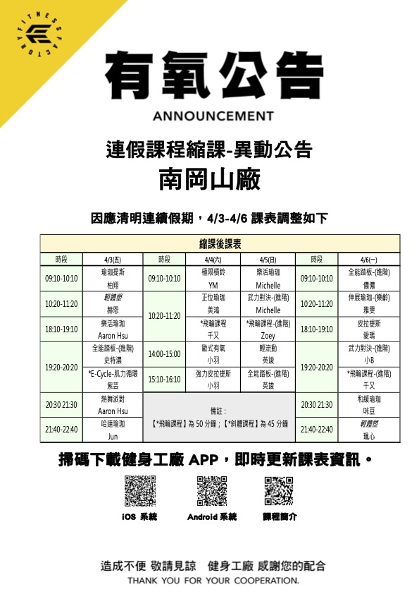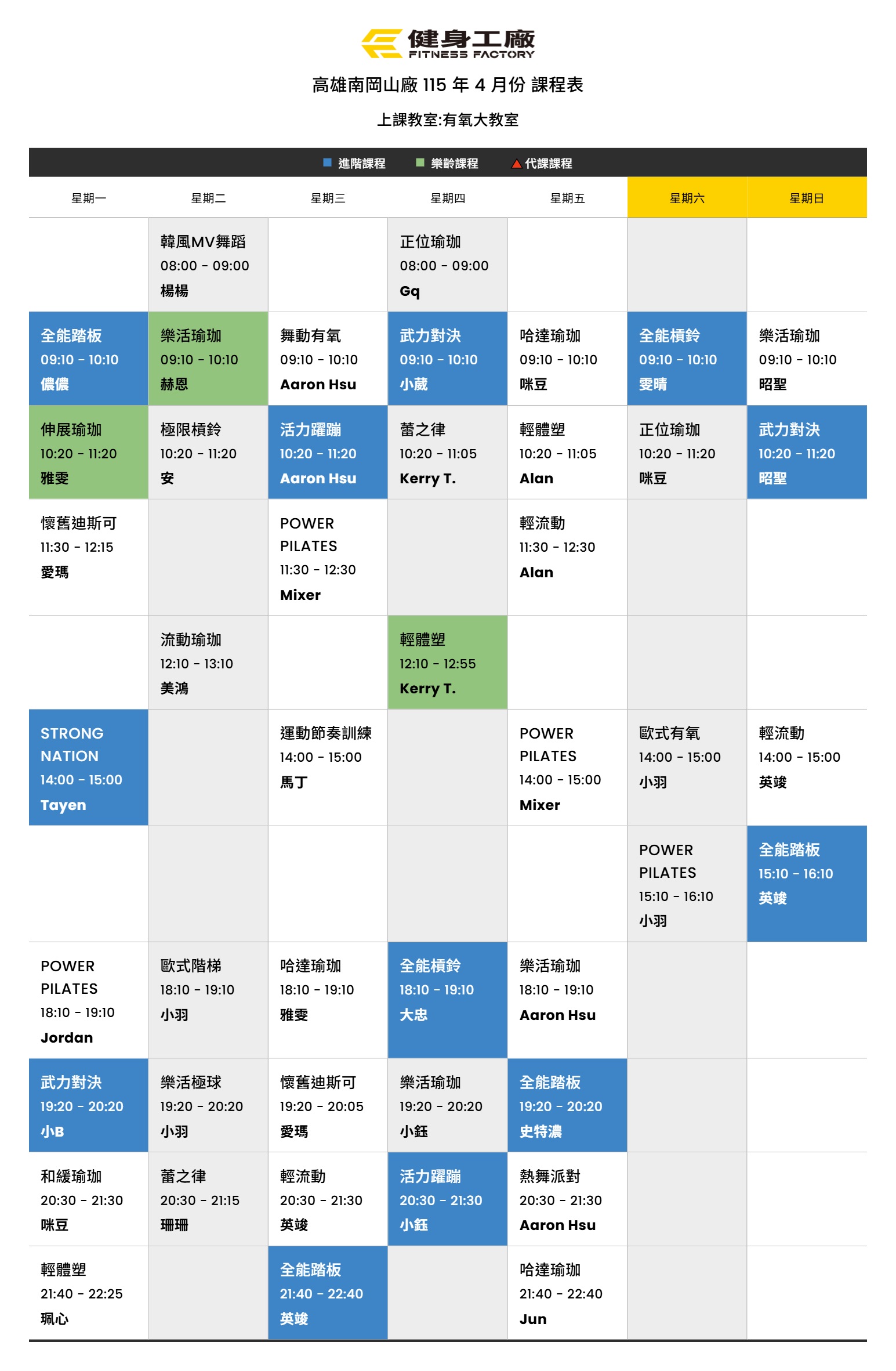 24Mar.2026【課表】南岡山廠-4月有氧課表
