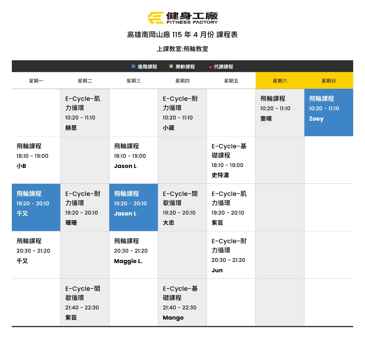 24Mar.2026【課表】南岡山廠-4月飛輪課表